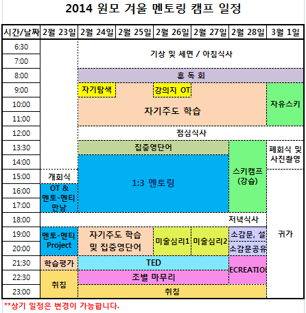 그래서 학습캠프의 일정안내를 하고자 합니다.