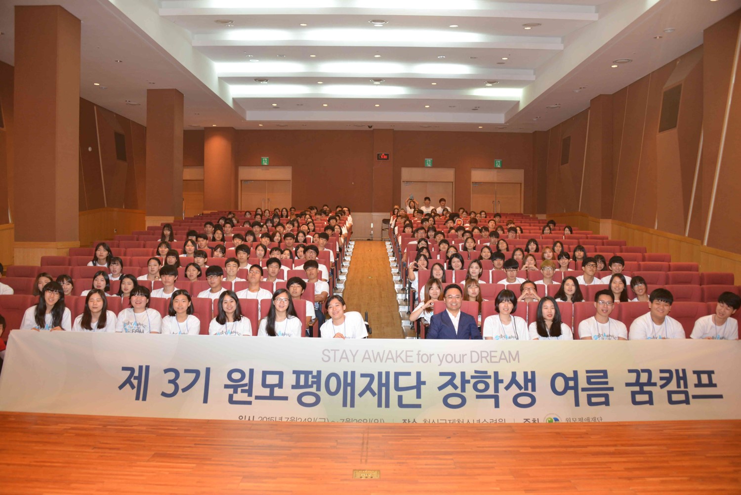 제3기 원모장학생들을 위한 여름꿈캠프가 7월 24일 부터 26일까지 2박3일의 일정으로 경기도 가평, 청심국제청소년수련원에서 개최되었다.