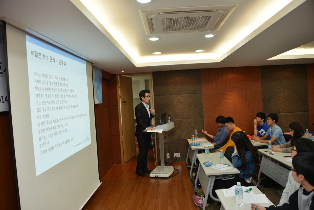 4월 26일(토) 오후2시 원모평애재단 세미나실에서는 장학생들을 대상으로 비전특강‘드림톡’을 진행하였다. 중간고사 기간임에도 불구하고 수도권의 많은 학생들이 참가하여 뜻깊은 시간을 가졌다. 드림톡은 장학생들이 천일국 비전을 이루는 인재로 성장할 수 있도록 그 꿈을 격려하고 지원하는 교육 프로그램으로 먼저 꿈을 향해 도전해온 선배들의 이야기를 듣고 대화를 나누는 시간이다. 이날은 공익인권법재단‘공감’에서 오랫동안 사회약자와 소수자들을 위해 노력해온 염형국변호사가 강의를 맡아주었다. 염형국변호사는 “공감”,“연대”,“자유”라는 3가지 주제로 장학생들에게 메시지를 전달했다. 일반 사회 사람들이 흔히 추구하는 돈과 권력, 명예를 위해 사는 삶이 아니라 ‘어떻게’살아야하는지에 대한 진솔한 이야기를 통해 장학생들과 소통하는 시간을 가졌다. 특히 변호사로서 인권을 보호하고 변론하는 자신의 직업을 토대로 삶을 대하는 염변호사의 삶을 통해 장학생들 스스로 자신의 꿈에 대해 진솔하게 생각해보는 계기를 마련하였다. 강의가 끝나자 기다렸다는 듯이 많은 장학생들이 질문을 하면서 변호사라는 직업을 가지고 살아가는 선배의 이야기에 많은 관심을 보였다.